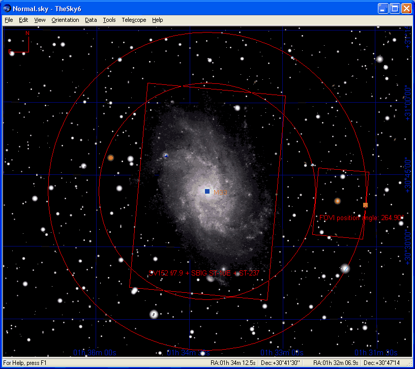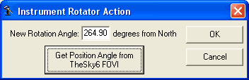 Using an instrument rotator with CCD Commander couldn't be easier! After you have pulled the object coordinates into CCD Commander from TheSky6, you can then use your FOVI to position the guide star on your guide chip.